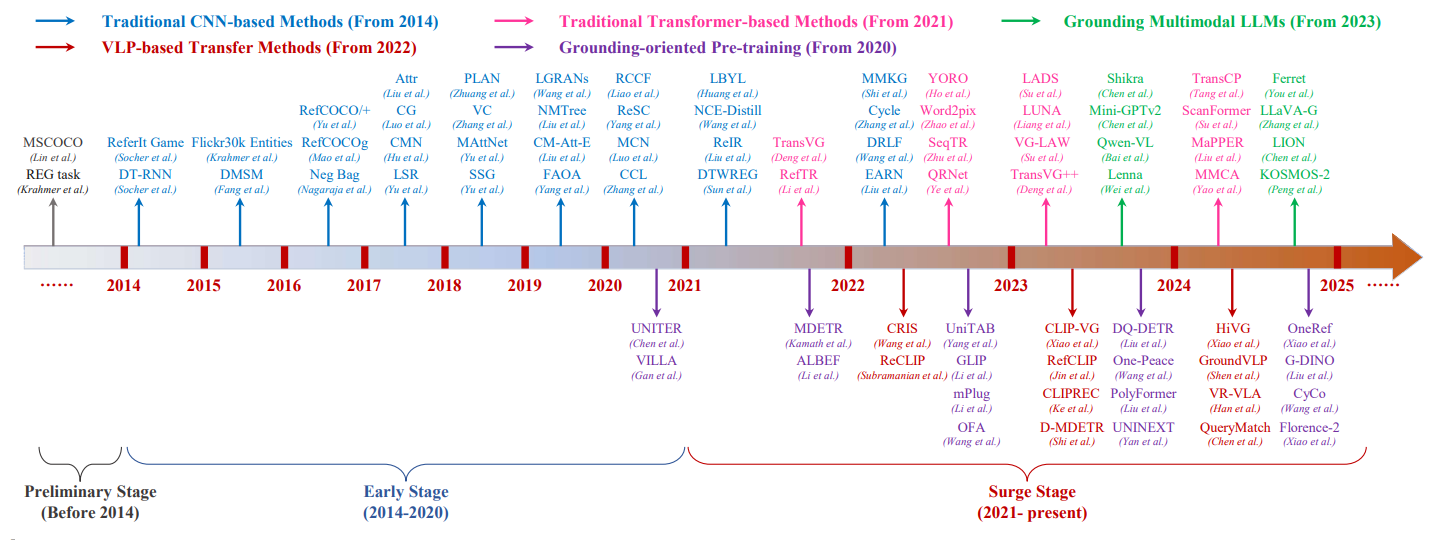 从23年至今专注于Grounding的文章很多,本文仅选择经典高引用文章和发表时间较新的文章作为参考,难免会有疏漏,还请读者见谅。