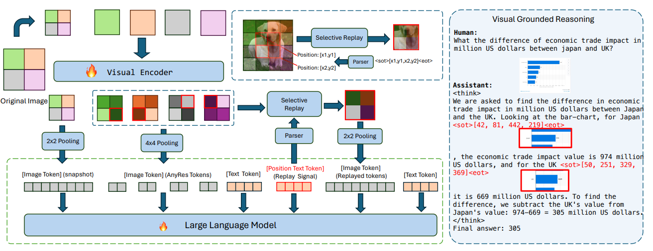 - 在推理过程中,当模型需要查看图像某个区域时,会生成一个特殊的 重放信号: