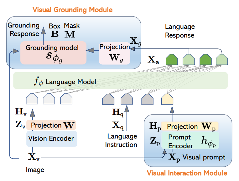 LLaVA-Grounding (2023)14引入 单独的 Grounding model分支来处理Grouding任务。