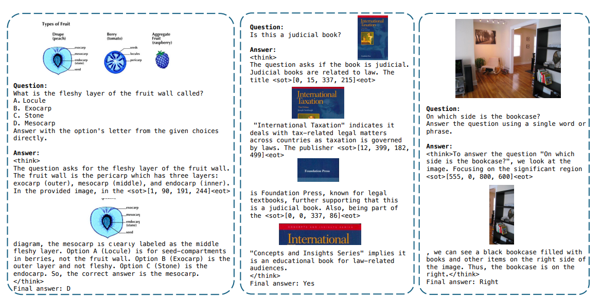 这样与交叉熵损失(用于文本生成)联合训练,确保模型在生成推理链的同时,能够精确地定位关键视觉区域。